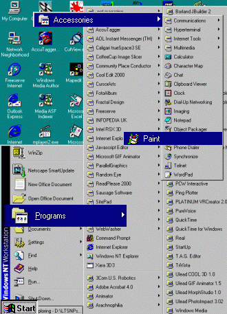 Launch the Microsoft Paint application. Click the Windows NT Start button at the bottom left of your screen then select Programs, Accessories, Paint Note that your screen display will not look the same as mine (cluttered ...) |