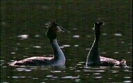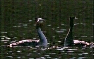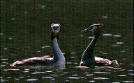 | Shaking display by great crested grebes: The pair face each, adopt an upright posture and shake their heads from side to side. You can watch a video of this behaviour (size:404K; opens in separate browser window) | |||