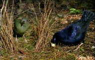 Bower birds are a family of birds in which males attract mates by collecting brightly coloured objects which they display to females in 'avenues' or on 'maypoles'. There is an interesting relationship between the colourfulness of a male's plumage, the visual properties of the objects they collect, and the complexity of the structures they build to house these objects. Female bower birds are rather drab creatures. Some species of male bower bird are also relatively drab, but they make up for this by building elaborate structures decorated by brightly coloured objects.