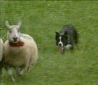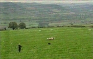 Apparently it is difficult to train a sheepdog to drive sheep away from a human, and to leave one group of sheep to go and gather more. You can see these behaviours tested in the fetch and outrun sections of a sheepdog trial. |