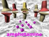 Here are some images from a movie showing that amphetamine releases catecholamines (especially dopamine) from synaptic vesicles in nerve terminals. Note that amphetamine causes a massive release of DA from synaptic vesicles within the presynaptic nerve ending which causes the postsynaptic neuron to fire.