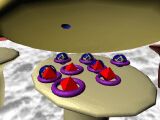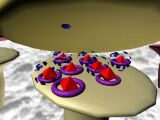 In this simulation chlorpromazine is injected first and occupies postsynaptic receptor sites. Then amphetamine is injected. This mimics the arrival of an action potential at the nerve ending and causes the release a large number of DA molecules from the presynaptic neurone. But this released DA cannot activate the postsynaptic receptors because they are occupied by chlorpromazine molecules. Consequently, the postsynaptic neurone does not generate an action potential. The released DA is broken down by enzymes in the synaptic cleft, or is reabsorbed into the presynaptic neurone.