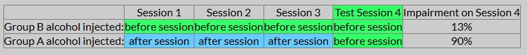 Before the final test session both groups received an alcohol injection.
