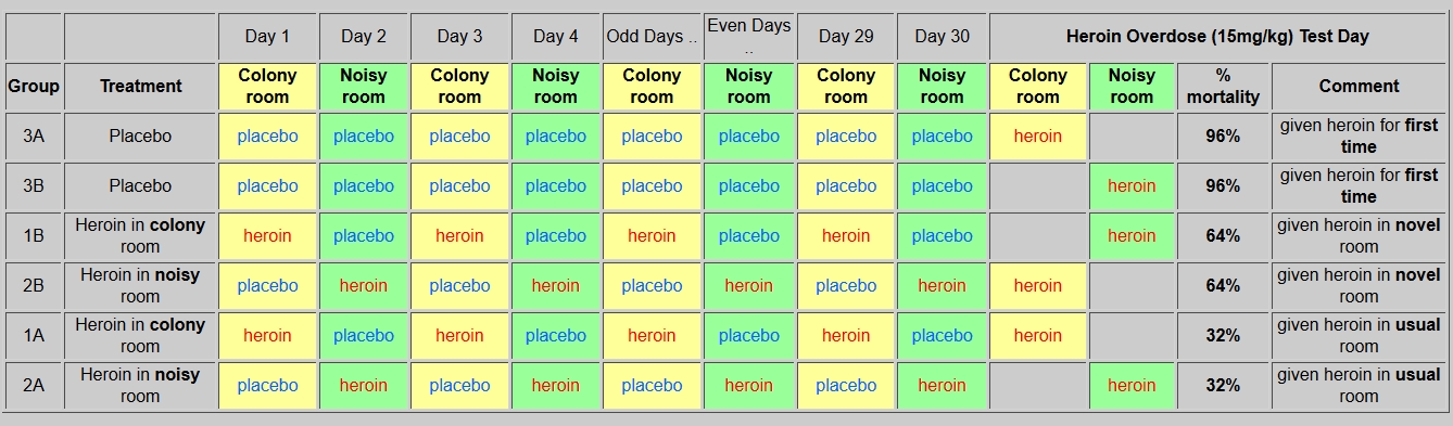 Siegel suggested that the reasons some addicts die from drug overdose is that they are like the rats in Groups 1B and 2B - they have taken their usual dose of drug in unusual circumstances.
