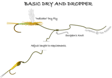The dry-fly maestro Dermot Wilson knew that Some experts in the West Country fish dry and wet at the same time ...They use two flies on their cast, a wet fly as a tail fly and a dry fly half way up as a dropper. They cast upstream and the trout can take their choice.
