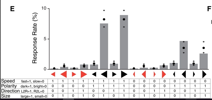 The authors discovered brain cells that responded to large, dark, moving spots - i.e. the most effective stimuli combination for eliciting hunting behaviour. "In conclusion, we find that tectal neurons show mixed selectivity and are sensitive to combinations of visual features (feature compounds). These include direction-selective cells with a preference for large, dark, moving spots that we found to be among the most effective stimuli in evoking hunting responses."