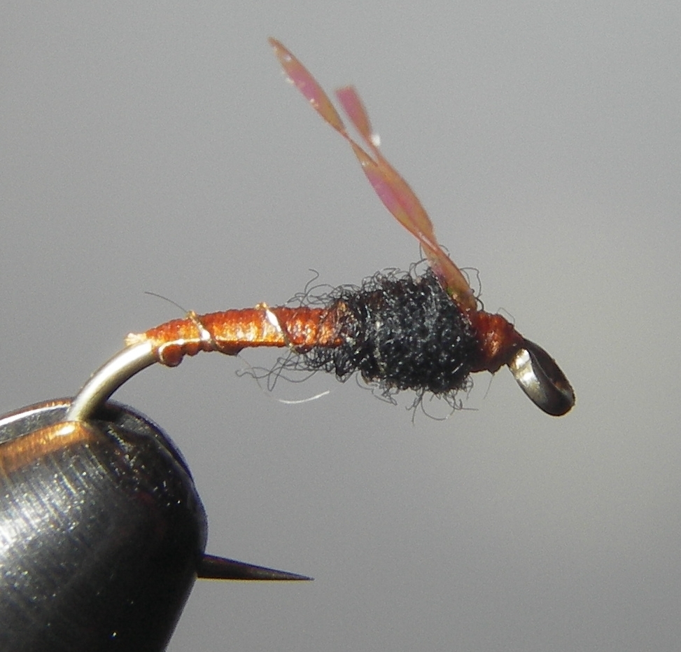 Improved Sparkle Dun and his Deer Hair Spinner: Poly Yarn to represent