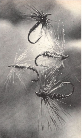This photograph of flymphs in water shows bubbles of air covering their hackles and bodies. It was originally published in the American magazine Sports Illustrated in 1960 in the third of a three part series of articles by V.S. Hidy titled The Art of Wet Fly Fishing.