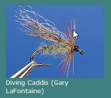 • imitate egg-laying female with a Diving Caddis using wet fly swing, 'Leisenring lift', or 'induced-take techniques with weighted leader