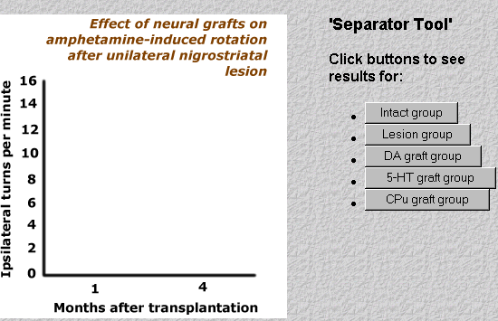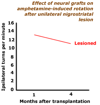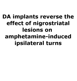 "Amphetamine produces a high level of ipsilateral turning in lesioned rats" saved in file lesioned_comment.png "DA implants reverse the effect of nigrostriatal lesions on amphetamine-induced ipsilateral turns" saved in file da_comment.png "5-HT implants do not reverse the effect of nigrostriatal lesions on amphetamine-induced ipsilateral turns" saved in file 5ht_comment.png "CPu implants do not reverse the effect of nigrostriatal lesions on amphetamine-induced ipsilateral turns" saved in file cpu_comment.png |