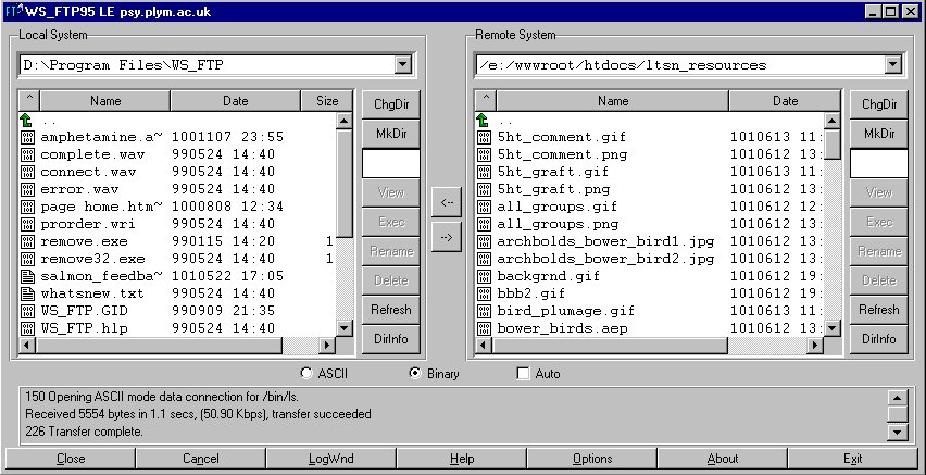 A successful FTP connection will display the contents of the folder wwwroot/htdocs/ltsn_resources on the FTP server (Remote System).