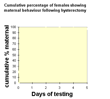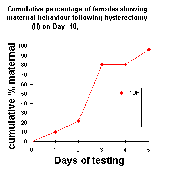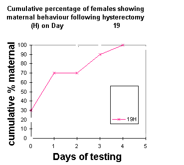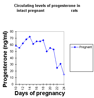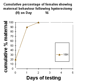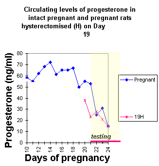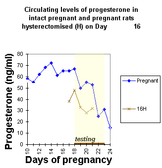 Role of Progesterone in the Onset of Maternal Behavior Author Paul KenyonIn an elegant series of experiments Jay Rosenblatt and his colleagues (see Advances in the Study of Behavior, vol10, 1979, pp225-311), examined the possibility that the decline in circulating progesterone level towards the end of pregnancy triggered the onset of maternal behavior in the rat. Hysterectomy was used to investigate this possibility. Groups of pregnant rats were hysterectomised on the: