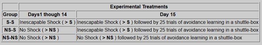 Rats were given repeated exposure to uncontrollable shock before being tested for their ability to learn an avoidance response in a shuttle-box.
