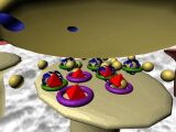 In this simulation chlorpromazine is injected first and occupies postsynaptic receptor sites. Then amphetamine is injected. This mimics the arrival of an action potential at the nerve ending and causes the release a large number of DA molecules from the presynaptic neurone. But this released DA cannot activate the postsynaptic receptors because they are occupied by chlorpromazine molecules. Consequently, the postsynaptic neurone does not generate an action potential. The released DA is broken down by enzymes in the synaptic cleft, or is reabsorbed into the presynaptic neurone.