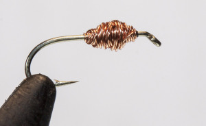 Sawyer specifically designed his nymphs to sink by substituting copper wire for tying silk.