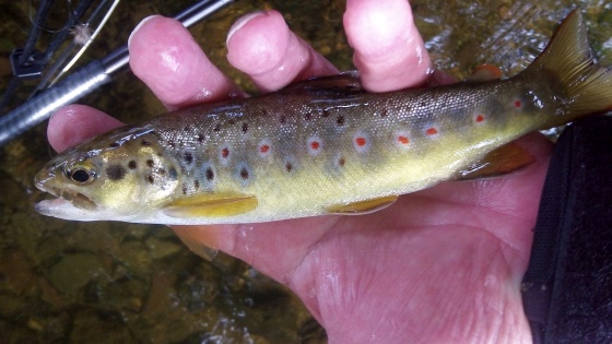 Criticism of fishing downstream with a wet fly is sometimes dressed up as unsporting - targeting small, young and therefore 'uneducated' trout. Here is an example of that attitude written in the style of an earlier age: "My main objection to wet fly fishing in the smaller rivers is that when the current carries the flies speedily the little brownies dart madly at the artificials, and do not give the bigger fish a chance of taking the lures. Again and again, with one throw, I have hooked a brace of the rascals of five or six inches in length ..." Cass (1946)